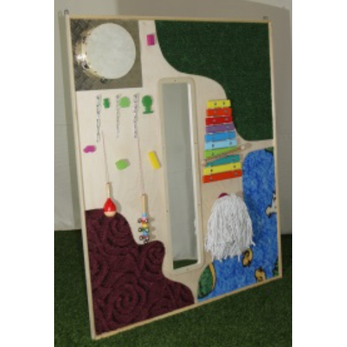 Панель сочетает в себе функции тактильной, зрительной и звуковой стимуляции. Предназначена для развития мелкой моторики и игровой терапии. На корпусе панели совмещено множество звуковых и декоративных предметов различных форм и размеров, изготовленных из дерева, ткани, металла, пластика: шурупы, ксилофон, металлофон, трещотки, маракасы, бубенцы. Углы обрамлены материалами различных фактур и формы. Панель способствует развитию тактильного, визуального и акустического восприятия, развивает осязательные навыки и интерактивную деятельность. Разнообразное наполнение делает эту панель одним из главных элементов Сенсорной и Игровой комнаты. Размеры панели позволяют одновременно играть с ней нескольким детям. Материал: Фанера (класс А, ФК 1/2), ковровые покрытия, алюминий, акриловое зеркало. Размер изделия: Высота: 1200 мм. Ширина: 1000 мм. Глубина: 15 мм. Вес — 10 кг. Объем — 0,063 м3.