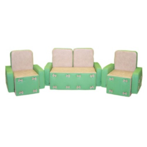 В комплекте: диван 1 шт., кресло 2 шт. Размеры: диван — 75*38*50 см., кресло — 45*38*50 см. Материалы: ВИК (винилискожа), поролон. Описание: Легко трансформирующаяся безопасная игровая кукольная мебель из поролона и винилискожи может быть использована для оформления игровой зоны в детском саду и для домашнего использования. Данные для транспортировки: объем 0,35 м3., вес 7 кг., 1 место.
