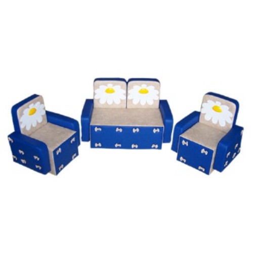 В комплекте: диван 1 шт., кресло 2 шт. Размеры: диван — 75*38*50 см., кресло — 45*38*50 см. Материалы: ВИК (винилискожа), поролон. Описание: Легко трансформирующаяся безопасная игровая кукольная мебель из поролона и винилискожи может быть использована для оформления игровой зоны в детском саду и для домашнего использования. Данные для транспортировки: объем 0,35 м3., вес 7 кг., 1 место.