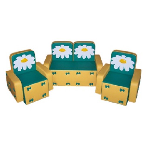 В комплекте: диван 1 шт., кресло 2 шт. Размеры: диван — 75*38*50 см., кресло — 45*38*50 см. Материалы: ВИК (винилискожа), поролон. Описание: Легко трансформирующаяся безопасная игровая кукольная мебель из поролона и винилискожи может быть использована для оформления игровой зоны в детском саду и для домашнего использования. Данные для транспортировки: объем 0,35 м3., вес 7 кг., 1 место.