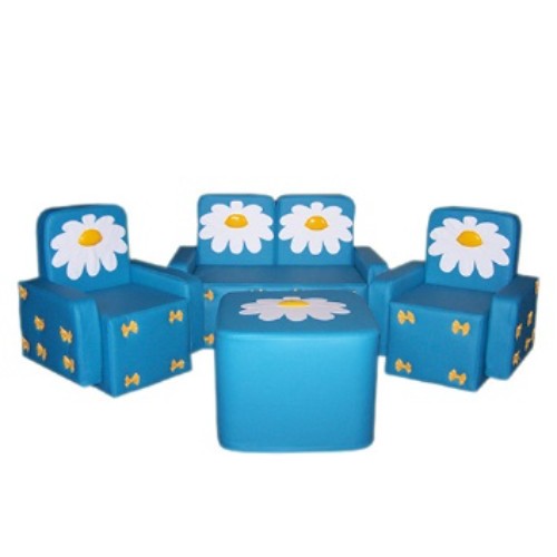 В комплекте: диван 1 шт., кресло 2 шт., стол 1 шт. Размеры: диван — 75*38*50 см., кресло — 45*38*50 см., стол — 40*40*40 см. Материалы: ВИК (винилискожа), поролон. Описание: Легко трансформирующаяся безопасная игровая кукольная мебель из поролона и винилискожи может быть использована для оформления игровой зоны в детском саду и для домашнего использования. Данные для транспортировки: объем 0,4 м3., вес 8 кг., 1 место.