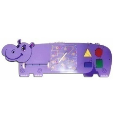 Бизиборд «Бегемот» состоит из четырёх элементов для развития интеллекта ребенка. На ней представлены: магнитный лабиринт, вкладыши геометрические фигуры, спица с различными гайками для развития мелкой моторики. В производстве используются экологически чистые сорта фанеры, водная акриловая краска, надежные стальные крепления. Размер изделия: Длина: 910 мм. Высота: 330 мм. Толщина: 55 мм. Вес — 2,8 кг. Объем — 0,023 м3.