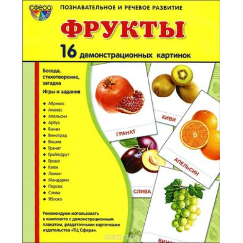 Демонстрационные карточки «Фрукты» (размер большой,16 штук)