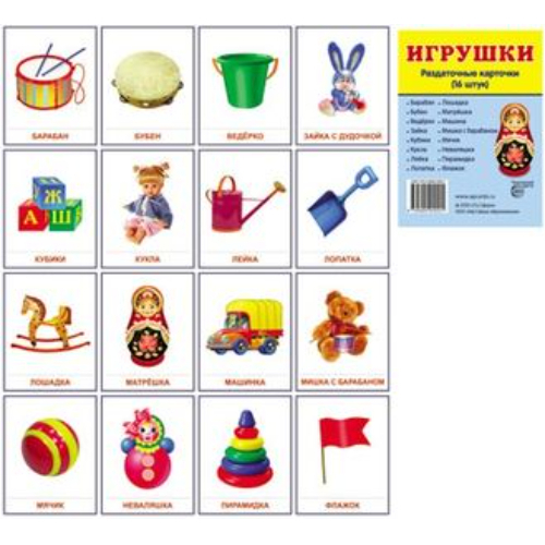 Демонстрационные карточки «Игрушки» (размер большой,16 штук)