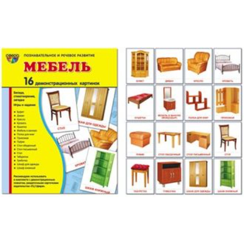 Демонстрационные карточки «Мебель» (размер большой,16 штук)