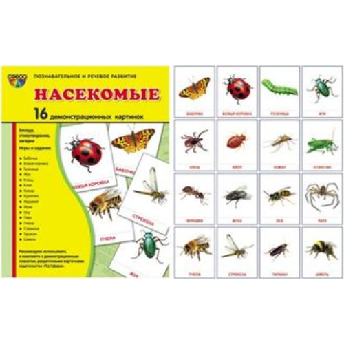 Демонстрационные карточки «Насекомые» (размер большой,16 штук)