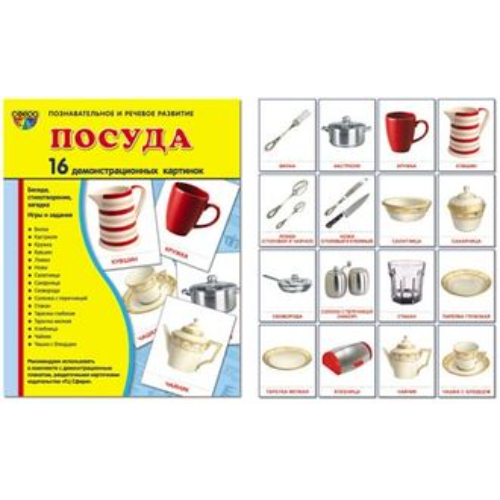 Демонстрационные карточки «Посуда»(размер большой,16 штук)