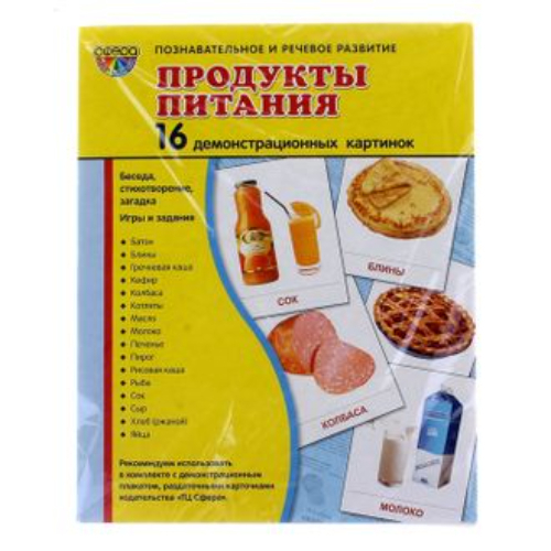 Демонстрационные карточки «Продукты питания» (размер большой,16 штук)