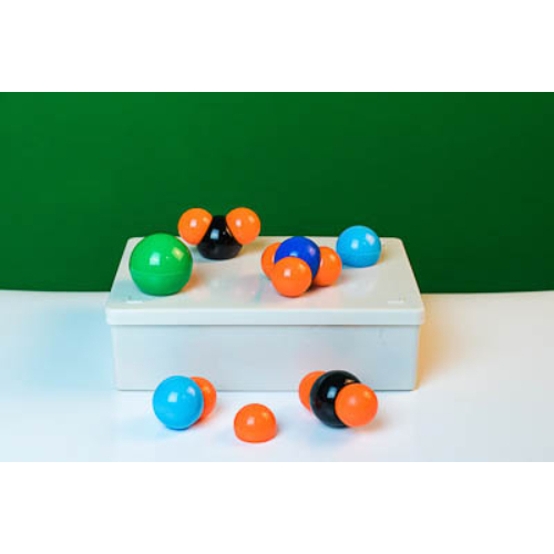 Набор предназначен для составления моделей молекул органических, а также неорганических веществ для наглядного изображения их структуры и прогнозирования свойств соединений. Набор состоит из пластмассовых шаров (моделей атомов) и втулок (для обозначения связей). Для обозначения разных видов связи атомов в соединениях (одинарной или двойной/тройной) предусмотрен разный цвет втулок. Набор позволяет моделировать молекулы метана и прочих предельных углеводородов, дихлорэтана, дихлорэтилена, этилена и его хлорпроизводных, бензола, метилбензола и фенола, этилового спирта, ацетона, уксусной и аминоуксусной кислот, ацетальдегида, анилина, нитробензола, сероводорода, воды, углекислого газа. Габаритные размеры в упаковке: 235х170х70 мм. Вес: не более 1 кг. В комплект входят модели следующих атомов: водорода (цвет — оранжевый) – 20 шт. хлора (зеленый) – 2 шт. натрия (коричневый) – 1 шт. углерода (черный) – 3 шт. углерода алифатического (черный) — 6 шт. углерода этиленового ароматического (черный) – 14 шт. кислорода эфирного (голубой) – 3 шт. кислорода карбонильного (голубой) – 2 шт. азота аммиачного (синий) – 1 шт. серы (желтый) – 1 шт.