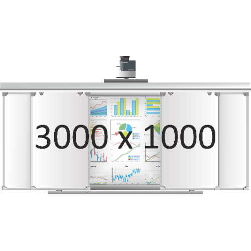 Доска раздвижная рельсовая (маркер), 3000х1000 мм. с нишей для интерактивной доски 1500х1000х90 мм.