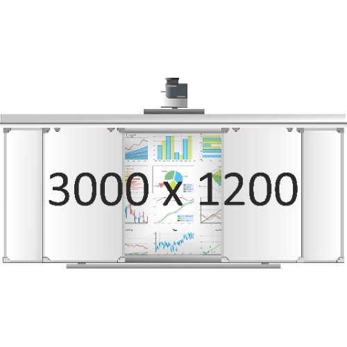 Доска раздвижная рельсовая (маркер), 3000х1200 мм. с нишей для интерактивной доски 1500х1200х90 мм.