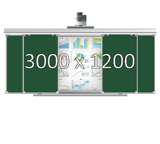 Доска раздвижная рельсовая (мел), 3000х1200 мм. с нишей для интерактивной доски 1500х1200х90 мм.