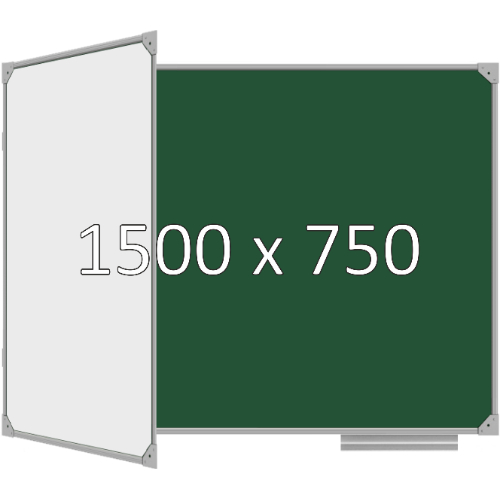 Доска школьная двухэлементная магнитная (мел+маркер), 1500х750 мм. полимер, лев.