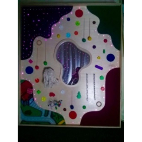 Фиброоптическая тактильная панель предназначена для зрительной и тактильной стимуляции, развивает осязательные навыки. Фиброоптическое волокно создает эффект мерцания при полном или частичном отсутствии освещения. Материал: Фанера (класс А, ФК 1/2), безопасное зеркало, ковровые покрытия, оптоволокно, LED-оборудование. Размер изделия: Высота: 1200 мм. Ширина: 1000 мм. Глубина: 115 мм. Вес — 10 кг. Объем — 0,19 м3.