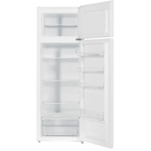 Холодильник DEXP RF-TD240MA/W белого цвета – достаточно компактная (159х55х55 см) и при этом вместительная модель, совокупный объем камер которой составляет 240 л. Это позволяет хранить продукты на 2–3 человек. Морозильная камера объемом 41 л расположена сверху и состоит из 2 полок. Интенсивность охлаждения продуктов достигает 2 кг/сутки. Работу модели обеспечивает линейный компрессор. В холодильном отделении объемом 199 л расположены 4 стеклянные полки и ящик для фруктов, а также подставка для яиц и контейнер для льда. Размораживается оно капельным методом. Корпус DEXP RF-TD240MA/W сверху покрыт металлом, а дверцы можно перевешивать на усмотрение владельца. Это, в совокупности с компактными размерами холодильника, позволяет с удобством размещать его на небольшой кухне. Модель принадлежит классу энергопотребления А+, что делает ее сверхэкономичной.