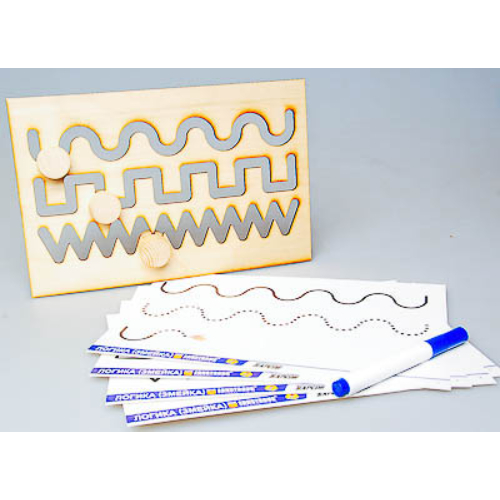 Набор предназначен для организации игровой и познавательно-исследовательской деятельности детей от 3 лет в организациях, реализующих программы дошкольного образования, и дома. Может быть использован в качестве игрового или учебно-наглядного материала в следующих образовательных областях: познавательное развитие, речевое развитие. Габаритные размеры в упаковке (дл.*шир.*выс.), см: 31,5*21,5*5,5. Вес, кг, не более 0,5. Комплектность: деревянный планшет – 1 шт., карточки-схемы – 4 шт., маркер – 1 шт., руководство по эксплуатации – 1 шт. Деревянный планшет имеет фигурные прорези и работает по принципу лабиринта. Карточки-схемы повторяют рисунок прорезей на деревянном планшете и также, как и планшет, служат тренажером для развития мелкой моторики и подготовки руки ребенка к письму. Карточки-схемы формата А4 изготовлены из картона, ламинированы пленкой, что позволяет писать на них маркером для белых досок. Написанное легко стирается сухой тряпкой.