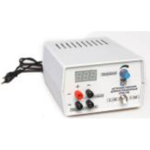 Источник предназначен для электропитания установок, используемых при проведении демонстрационных опытов на уроках физики в общеобразовательной школе. Выходное постоянное и переменное напряжение, регулируемое в двух диапазонах: 0…12, 0…24 В. Максимальный ток нагрузки 2А. Нестабильность выходного напряжения при изменении напряжения сети на ±10%: не более ±2%. Электропитание: однофазная сеть с напряжением 220В и частотой 50Гц. Потребляемая мощность: не более 50 Вт. Масса не более 1,7 кг. Габаритные размеры, мм: 150*125*80. Электрическая схема прибора смонтирована в пластмассовом корпусе. На передней стенке расположены клеммы для подключения нагрузки, ручка регулятора для установки напряжения, вольтметр класса точности 2,5, переключатель режимов, выключатель сети. На задней стенке размещены предохранители на 0,4А и 2А. Время непрерывной работы источника не более 30 минут, после чего необходим перерыв в течение 10 минут.