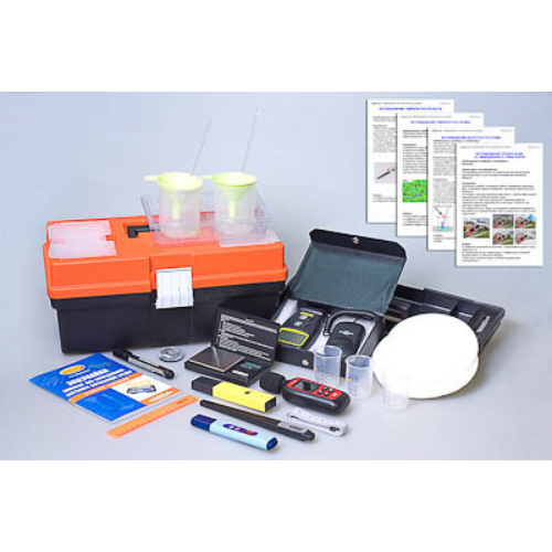 Автор: канд. геогр. наук И.Л. Марголина Предназначена для проведения практических работ экологической тематики при изучении географии, биологии, экологии, физики, химии, а также при реализации проектно-исследовательской деятельности учащихся. Габаритные размеры в упаковке (дл.*шир.*выс.), см: 42*20*19. Вес, кг, не более 2,8. Представляет собой комплект цифровых датчиков в виде портативных приборов по каждой измеряемой характеристике, лабораторной посуды, необходимой для проведения исследований, набора карточек с разработанными постановочными исследовательскими задачами и нормативами, и учебно-методическое пособие (автор канд. геогр. наук И.Л. Марголина). Методика постановочных задач адаптирована для проектных исследований в среднем образовании и включает в себя как типичные исследования по оценке качества окружающей среды (водных объектов, воздушной среды, почвенного покрова, осадков, снежного покрова), так и современные направления экологических исследований по оценке экологического состояния жилых и учебных помещений. Приборная и адаптированная учебно-методическая составляющие пособия позволяют учащимся реализовать самостоятельные проектные исследования по направлениям отдельных предметных дисциплин и междисциплинарные (комплексные) проекты. Комплектность: термометр электронный – 1 шт., рН-метр электронный – 1 шт., кондуктометр электронный – 1 шт., люксметр электронный – 1 шт., шумомер электронный – 1 шт., весы электронные – 1 шт., компас – 1 шт., стаканы мерные 50 мл – 3 шт., стаканы мерные 250 мл – 2 шт., воронки – 2 шт., фильтры обеззоленные – 1 уп., палочки стеклянные – 2 шт., кюветы – 2 шт., линейка – 1 шт., лента сантиметровая – 1 шт., маркер перманентный – 1 шт., батарейка крона – 1 шт., батарейки ААА – 3 шт., карточки 1–16 – по 1 шт., учебное пособие «Экознайка. Комплект для исследования состояния окружающей среды» (автор И.Л. Марголина – 40 страниц – печать офсетная, обложка полноцвет.) – 1 шт., руководство по эксплуатации – 1 шт., пластиковый чемоданчик – 1 шт. Перечень карточек с постановочными исследовательскими задачами и нормативами: 1. «Исследование температуры воздуха», 2. «Исследование температуры воды», 3. «Исследование температуры почвы», 4. «Исследование температуры снежного покрова», 5. «Исследование минерализации воды», 6. «Исследование загрязнения снежного покрова антигололедными смесями», 7. «Исследование кислотности воды», 8. «Исследование кислотности осадков», 9. «Исследование кислотности почвы», 10. «Исследование уровня шума в помещении», 11. «Исследование уровня шума от автотранспорта», 12. «Исследование уровня шума от авиационного транспорта», 13. «Исследование уровня освещенности в помещении», 14. «Исследование светового загрязнения», 15. «Санитарные нормы уровня шума», 16. «Нормы освещения общеобразовательных учреждений и помещений жилых домов».