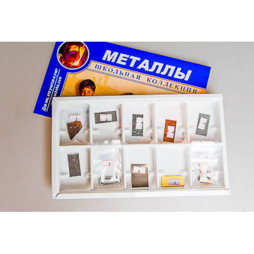 Коллекция предназначена для использования в качестве раздаточного материала Габаритные размеры в упаковке: 300х175х30 мм. Вес: не более 0,16 кг. Состав коллекции: чугун сталь цинк (покрытие на стали) медь алюминий свинец олово титан латунь бронза припой Пособие комплектуется руководством по эксплуатации и ламинированным вкладышем, содержащим информацию о свойствах металлов.