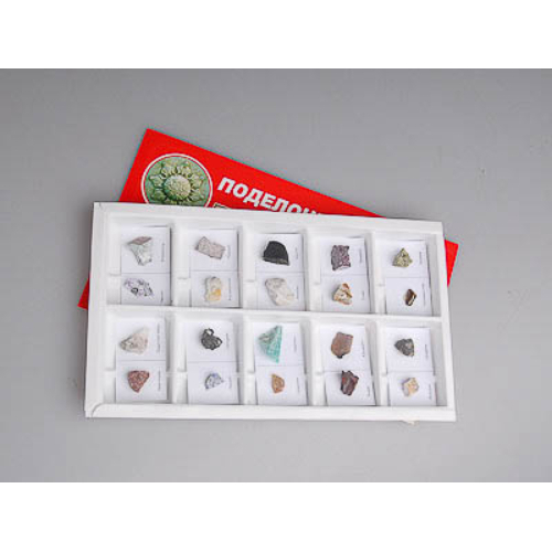 Коллекция предназначена для демонстрации на уроках географии. Габаритные размеры в упаковке (дл.*шир.*выс.), см 30*17,5*2,5. Вес, кг, не более 0,1. Образцы наклеены на картонные карточки и подписаны, упакованы в коробку с ячейками. Пособие комплектуется руководством по эксплуатации. В состав коллекции входят двадцать образцов различных поделочных камней.