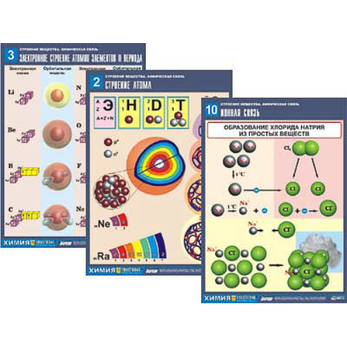 Комплект демонстрационных таблиц по химии «Строение вещества. Химическая связь» 16 табл.