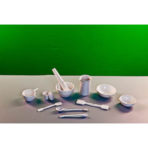 Изготовлены из фарфора. Комплектность: кастрюля с ручкой №1 – 1 шт. ложка №1 – 1 шт. ложка №2 – 1 шт. пест №3 – 1 шт. стакан №3 – 1 шт. ступка №3 – 1 шт. тигель №3 – 1 шт. крышка к тиглю №3 – 1 шт. чашка выпарительная №2 – 1 шт. чашка выпарительная №3 – 1 шт. шпатель № 1 – 1 шт. шпатель № 2 – 1 шт.