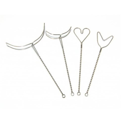 Комплект логостимулонов предназначен для проведения массажа артикуляционных мышц, а также для коррекции эластичности подъязычной и губной связок. Большой полукруглый логостимулон используется для массирования лицевых мышц, малый полукруглый — для мышц губ и артикуляции, логостимулоны в виде сердца и вилки — для растяжения укороченной подъязычной связки.Материал нержавеющая сталь