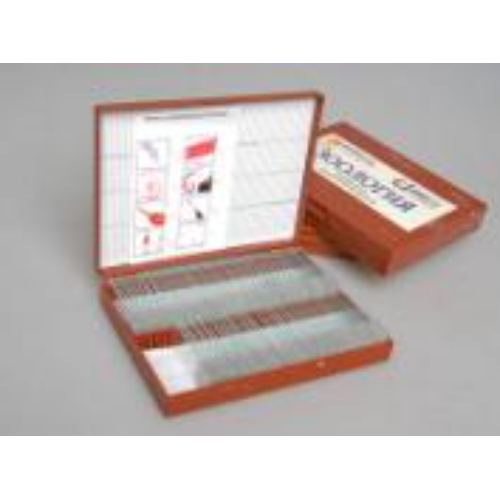 Комплект предназначен для проведения лабораторных работ, посвященных изучению строения биологических объектов на клеточном и гистологическом уровнях, при изучении курса биологии по разделу «Животные». Габаритные размеры в упаковке (дл.*шир.*выс.), см: 22*17*4. Вес, кг, не более 0,85. Комплектность: продольный срез гидры — 15 шт., членики ленточного червя — 15 шт., срез дождевого червя — 15 шт., ротовой аппарат бабочки — 5 шт., конечность пчелы — 15 шт., ротовой аппарат комара — 15 шт., ротовой аппарат саранчи — 5 шт., эвглена — 15 шт. Всего: 100 шт. Препараты обработаны консервантами, смонтированы на предметных стеклах, закрыты покровными стеклами. Каждый препарат маркирован этикеткой с номером и названием на русском и английском языках. Комплект микропрепаратов уложен в закрывающуюся на замочек коробку с подписанными ячейками.