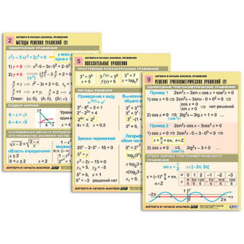Комплект таблиц «Алгебра и начала анализа. Уравнения» (10 табл., формат А1, лам)