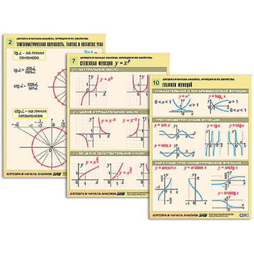 Комплект таблиц «Алгебра и начала анализа. Функции и их свойства» (14 табл., формат А1, лам)