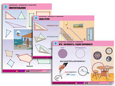 Комплект таблиц для нач. шк. «Математика. Знакомство с геометрией» (6 табл., формат А1, лам.)
