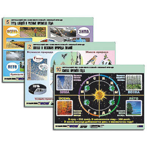 Комплект содержит: 1. Учебное пособие «Окружающий мир. Изменения в живой и неживой природе. Методические рекомендации» (Авторы: К.М. Тихомирова, Е.А. Нефёдова, Н.А. Писаренко). 2. Комплект учебно-наглядных пособий формата А1 с полноцветной печатью и матовой двухсторонней ламинацией в количестве 10 таблиц. Таблицы: 1. Живая и неживая природа осенью. 2. Живая и неживая природа зимой. 3. Живая и неживая природа весной. 4. Живая и неживая природа летом. 5. Труд людей в разные времена года. 6. Вода и ее свойства. 7. Воздух и его свойства. 8. Минералы, горные породы, полезные ископаемые. 9. Смена дня и ночи. 10. Смена времен года.