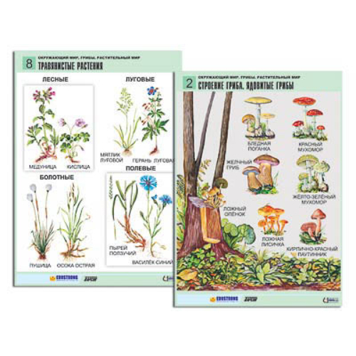 Комплект таблиц для нач. шк. «Окружающий мир. Грибы. Растительный мир» (12 табл., формат А1, лам.)