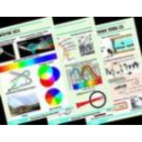 Комплект содержит: 1. Учебное пособие «Оптика. Специальная теория относительности. Методические рекомендации» (Кабардин О.Ф.) 2. Комплект учебно-наглядных пособий формата А1 с полноцветной двухсторонней печатью и матовой двухсторонней ламинацией в количестве 14 таблиц. Комплект охватывает следующие темы: законы распространения света, скорость света, дисперсия света, рентгеновское излучение, применение электромагнитных волн, интерференция света, дифракция света, линзы, оптические приборы, глаз, экспериментальные основы СТО, энергия и импульс в СТО, законы сохранения в СТО, масса и энергия системы частиц в СТО.