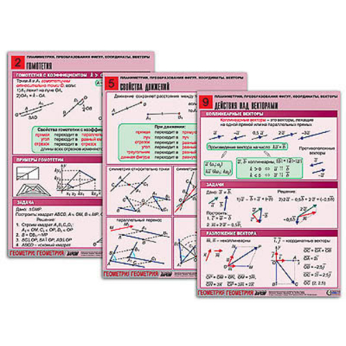 Комплект таблиц по геометрии «Планиметрия. Преобразования фигур. Координаты. Векторы»(10 т, А1, лам)