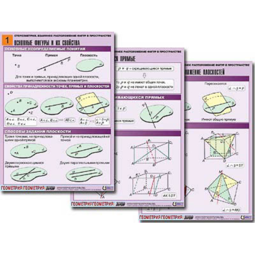Комплект таблиц по геометрии «Стереометрия. Взаимное расположение фигур в пространстве» (8т, А1,лам)
