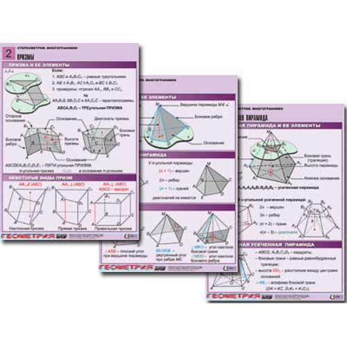 Комплект таблиц по геометрии «Стереометрия. Многогранники» (8 табл., А1, лам.)