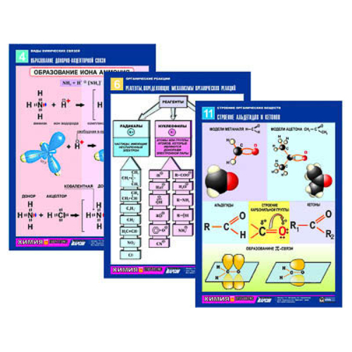 Предназначены для использования в качестве раздаточного материала по курсу химии. Выполнены на плотной мелованной бумаге с полноцветной печатью формата А4 и ламинированы пленкой. Комплектность: «Распространенность химических элементов» «Содержание химических элементов в природе и организме человека» «Структурные единицы атома. Изотопы. Виды радиоактивного излучения» «Взаимосвязь круговоротов кислорода и углерода» «Кислотно-основные свойства оксидов в зависимости от положения элементов в Периодической системе» «Зависимость свойств веществ от вида химической связи» «Типы кристаллических решеток простых веществ» «Валентность и степень окисления» «Составление формул по валентности» «Генетическая связь классов неорганических веществ» «Растворимость кислот, оснований и солей в воде» «Общие свойства металлов»