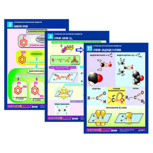 Комплект таблиц по химии раздаточных «Строение органических веществ» 16 шт.