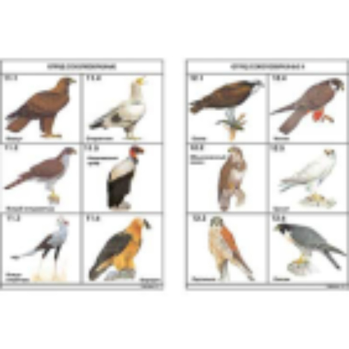 Комплект таблиц по зоологии раздат. «Разнообразие животных. Птицы.» (цвет.,лам., А4, 16 шт.)