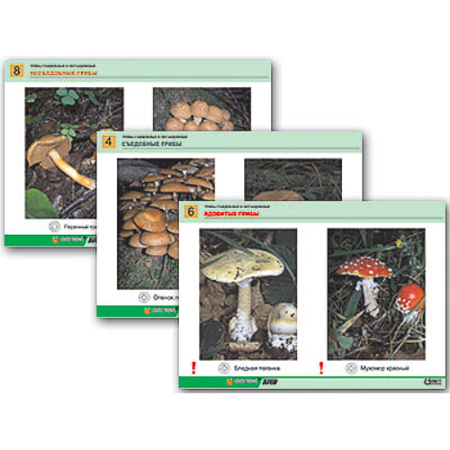Комплект таблиц раздат. «Грибы съедобные и несъедобные» (цвет., лам., А4, 8 шт.)
