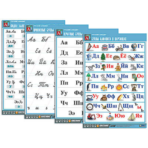 Комплект таблиц «Русский алфавит» (4 табл., формат А1, матовое ламинир.)
