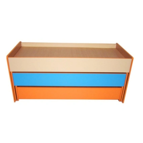 Размер: 149*67*67 см., размер спальных мест: 135*62 см., 140*62 см., 145*62 см. Материал: ЛДСП Описание: Цвет основания БУК или кремовый, спинки цветные по желанию заказчика, цветная кромка ПВХ 0,4 мм. и 2 мм. (производство Германия). Спинки со скругленными углами, вторая и третья кровать со ступором, чтобы не выкатывались бесконтрольно. Между царгами кроватей 8 дополнительных планок для усиления, на которые кладется ДВП для матраса. Данные для транспортировки: объем 0,2 м3., вес 101 кг.