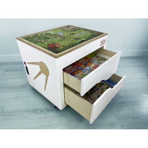 Это профессиональный набор инструментов для логопедических занятий с детьми. Содержит всё необходимое, чтобы помочь детям дошкольного и младшего школьного возраста исправить нарушения в речевом развитии. Комплектация: Программное обеспечение на USB-носителе: – Программное обеспечение для логопедов «Звукоречье»; – «АЛМА Дошкольное образование»; – Игра-квест для подготовки к школе «5 Островов»; – Интерактивная раскраска «Оживариум»; Мобильный короб с двумя ящиками плавного хода; Безопасное акриловое зеркало; Встроенный отсек для песочной терапии; Настольная пошаговая игра; Беспроводная музыкальная система; Логопедические зонды из медицинской стали; Методические пособия: Нищева Н.В., тетради Азова, Чернова (8 шт.); Набор для логомассажа; Логопедические карточки, ордена и мотивационные наклейки (более 420 шт.). Пошаговая настольная игра на крышке куба помогает детям в игровой форме развивать правильное звукопроизношение и отрабатывать автоматизацию звуков и слогов. Стол с подсветкой для песочной терапии снимает эмоциональное напряжение, развивает мелкую моторику и творческие способности малышей. Для классических методик работы предусмотрено большое зеркало на крышке куба, комплект логопедических зондов, наборы для логомассажа и обширная база методических пособий, карточек и тетрадей. В комплекте к кубу идёт программное обеспечение, которое можно установить на рабочий компьютер специалиста. Это «Звукоречье» – профессиональное ПО для логопедов, АЛМА «Дошкольное образование», игра-квест «5 Островов» и раскраска «Оживариум». Логопедический куб АЛМА или ранее он назвался Сундучок Логопеда — обеспечивает комплексный подход к логопедическим занятиям в ДОУ.