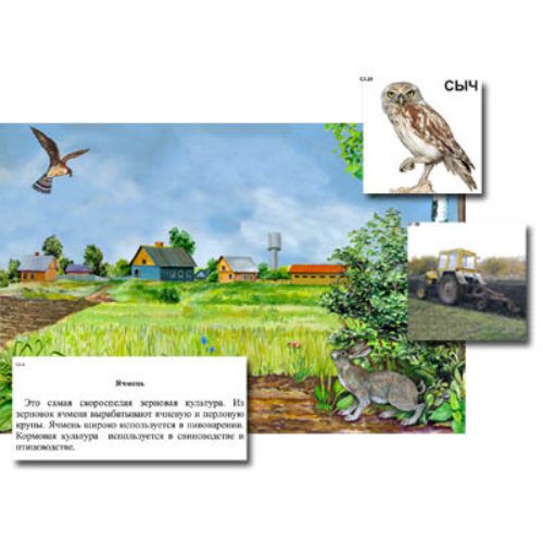 Пособие включает: плакат с изображением участка поля – 1 шт., магнитные карточки с изображениями культурных и сорных растений, растений и животных лесозащитной полосы, продуктов питания человека, животных – вредителей полевых культур, заболеваний растений – 46 шт., магнитные карточки для заметок – 4 шт., карточки с описаниями – 34 шт. (общее количество карточек 84 шт.), фломастер на водной основе с ластиком – 1 шт., учебное пособие «Биоразнообразие и взаимосвязи в природных сообществах» (автор Л. Н. Дорохина – 48 страниц — печать офсетная, обложка полноцветная) — 1 шт. Плакат размером 90*60 см изготовлен из магнитного материала с применением полноцветной односторонней печати, что позволяет легко крепить его на магнитной доске или экране для динамических пособий.