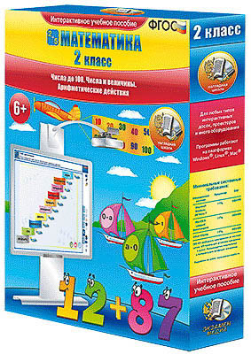 Интерактивное учебное пособие разработано с учётом ФГОС НОО и примерной программы по математике начального общего образования. 1. Счет десятками. 2. Числа от 11 до 100. Часть 1. 3. Числа от 11 до 100. Часть 2. 4. Сложение и вычитание в пределах 100. 5. Сложение и вычитание без перехода через десяток. 6. Сложение и вычитание с переходом через десяток. 7. Сложение и вычитание в столбик без перехода через десяток. 8. Сложение и вычитание в столбик с переходом через десяток. 9. Числовые выражения. 10. Проверка сложения и вычитания. 11. Решение уравнений. Часть 1. 12. Решение уравнений. Часть 2. 13. Единицы измерения стоимости. 14. Единицы измерения времени. Часть 1. 15. Единицы измерения времени. Часть 2. 16. Конкретный смысл действия умножения. 17. Умножение и деление. 18. Компоненты умножения и деления. 19. Переместительное свойство умножения. 20. Умножение и деление на 2, 3, 4. 21. Умножение и деление на 5, 6, 7. 22. Умножение и деление на 8, 9. 23. Трёхзначные числа. 24. Сложение и вычитание трёхзначных чисел.