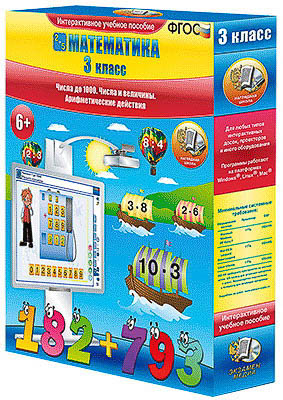 Интерактивное учебное пособие разработано с учётом ФГОС НОО и примерной программы по математике начального общего образования. 1. Числа от 1 до 100. 2. Однозначные, двузначные и трехзначные числа. 3. Решение уравнений. 4. Табличное умножение и деление. 5. Письменное умножение и деление на однозначное число. 6. Внетабличное умножение и деление. Часть 1. 7. Внетабличное умножение и деление. Часть 2. 8. Деление с остатком. 9. Порядок выполнения действий. 10. Доли. Часть 1. 11. Доли. Часть 2. 12. Единицы измерения времени. 13. Трёхзначные числа. 14. Числа от 1 до 1000. 15. Сложение и вычитание трёхзначных чисел. 16. Обозначение чисел римскими цифрами.