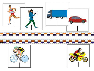 Пособие предназначено для использования в качестве демонстрационного материала на уроках математики в начальной и средней школе при изучении задач на движение. Габаритные размеры в упаковке (дл.*шир.*выс.), см: 16*22*3,5. Вес, кг, не более 0,14. Комплектность: числовая прямая – 1 шт., картинка «Грузовой автомобиль» – 1 шт., картинка «Легковой автомобиль» – 1 шт., картинка «Велосипедист» – 1 шт., картинка «Мотоциклист» – 1 шт., картинка «Пешеход» – 1 шт., картинка «Бегун» – 1 шт., магнитная кнопка с редкоземельным магнитом – 2 шт., руководство по эксплуатации – 1 шт. Числовая прямая представляет собой прямую с неоцифрованной шкалой (цена деления 5 см), напечатанную на баннерной ткани (плотный влагостойкий материал). Шкала не оцифрована, что позволяет действовать с целыми числами и с дробями, а также использовать пособие в средней школе, при изучении отрицательных чисел. Пособие крепится на классную доску магнитными кнопками. Карточки с изображениями людей и транспортных средств также снабжены магнитами, что позволяет легко крепить их и передвигать по доске. На лицевой стороне карточки нанесена прямая, предназначенная для совмещения со штрихами разметки.