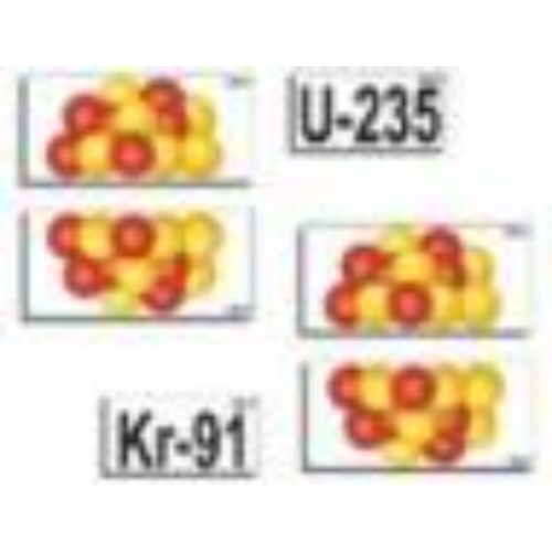 Автор-разработчик: канд. пед. наук Н. Ю. Соколова. Пособие предназначено для использования в качестве демонстрационного материала при изучении следующих тем: «Механизм деления ядра урана», «Цепная ядерная реакция». Модель-аппликация позволяет в относительной динамике показать механизм деления ядра урана, механизм протекания цепной ядерной реакции, иллюстрирует разные варианты реакций деления ядер урана, предоставляет учащимся возможность для самостоятельного составления уравнений реакций деления. Карточки ламинированы матовой (антибликовой) пленкой и снабжены магнитами, что позволяет легко крепить их на магнитной доске или экране для динамических пособий.