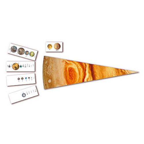 Пособие является демонстрационным и предназначено для изучения Солнечной системы в курсе астрономии, физики, географии и естествознания в средней школе, в курсе математики для наглядности понятия масштаба, а также может быть использовано на уроках по предмету «Окружающий мир» в начальной школе. Габаритные размеры в упаковке (дл.*шир.*выс.), см: 40*13,5*14. Вес, кг, не более 1,3. Комплектность: карточка с изображением сектора Солнечного диска – 1 шт., карточка с изображением сектора диска Юпитера – 1 шт., карточка с изображениями планет земной группы: Меркурия, Венеры, Земли и Марса – 1 шт., карточка с изображением Юпитера – 1 шт., карточка с изображением Сатурна – 1 шт., карточка с изображением Урана – 1 шт., карточка с изображением Нептуна – 1 шт., карточки с изображением веса человека на разных планетах – 4 шт., карточка с изображением Меркурия и Луны – 1 шт., карточка с изображениями спутников Юпитера – 1 шт., карточка с изображениями спутников Сатурна – 1 шт., карточка с изображениями спутников Урана – 1 шт., карточка с изображениями спутников Нептуна – 1 шт., руководство по эксплуатации с методическими рекомендациями – 1 шт. Изображения на карточках цветные, отпечатаны на магнитном виниле. В руководстве по эксплуатации с методическими рекомендациями описаны следующие демонстрации: «Сравнение Солнца и Земли», «Сравнение Солнца и Юпитера», «Сравнение Юпитера с другими планетами», «Сравнение планет земной группы с планетами-гигантами», «Вес на разных планетах», «Сравнение Юпитера, Меркурия и Луны», «Сравнение Юпитера с его спутниками», «Сравнительные размеры спутников планет-гигантов».